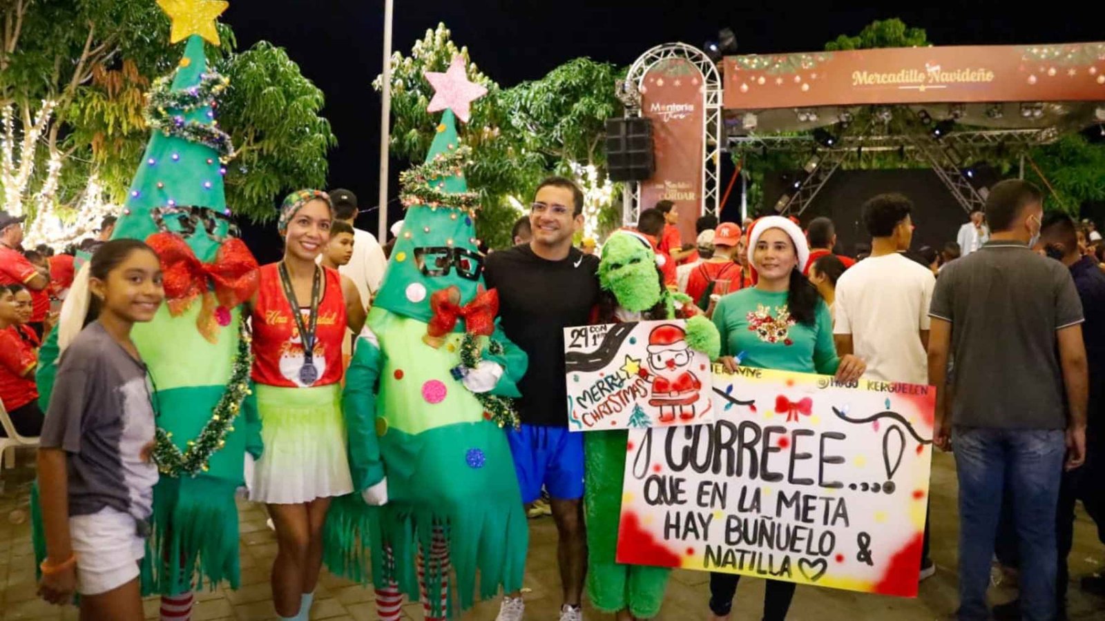 Durante el trayecto, corredores y caminantes disfrutaron de música, barras de apoyo, disfraces navideños y un ambiente festivo que convirtió la carrera en una experiencia turística y cultural.